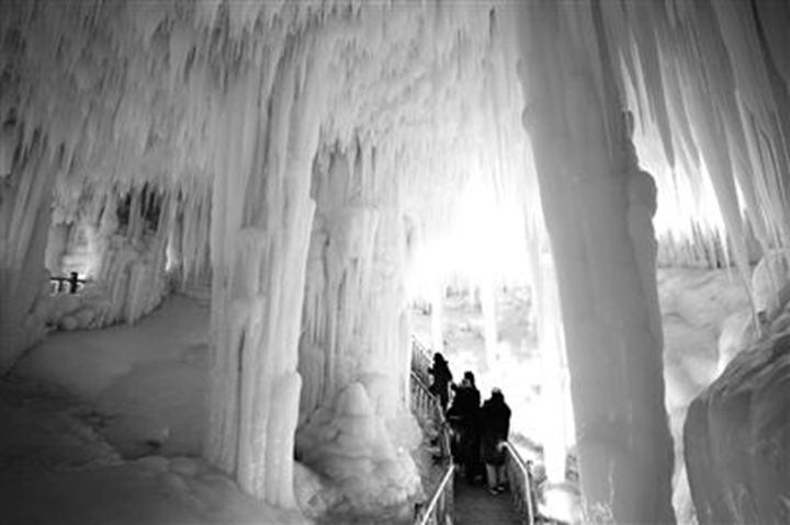 游客在云丘山1号冰洞参观。 记者 詹彦 摄