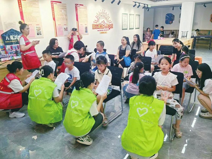 太原市万柏林区组织实习实训大学生助力爱心暑托班,为青少年提供看护服务。