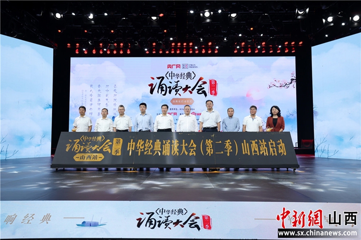 伴随演出的结束,现场嘉宾共同上台为中华经典诵读大会(第二季)山西站进行启动。