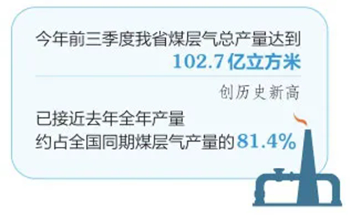 开发利用煤层气一直是我省推动能源产业绿色转型的重点之一。记者近日从山西省统计局获悉,今年前三季度我省煤层气总产量达到102.7亿立方米,创历史新高,已接近去年全年产量,约占全国同期煤层气产量的81.4%。