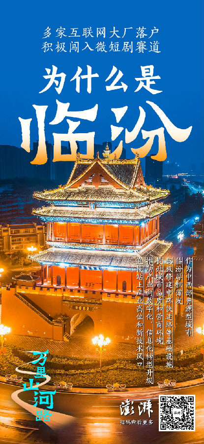 李臻告诉澎湃新闻,临汾正致力于打造一条从创作、拍摄、制作、审批、发行、交易、投资到衍生产业为一体的微短剧全产业链,加速形成品牌效应,联动效应,促进全市文化产业、旅游产业深度融合发展。