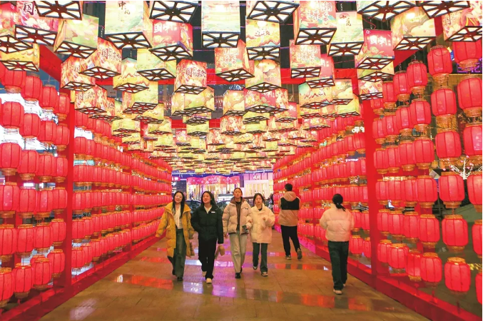 2月4日,晋城市城区大街小巷张灯结彩,吸引了众多市民驻足观赏。山西日报通讯员摄