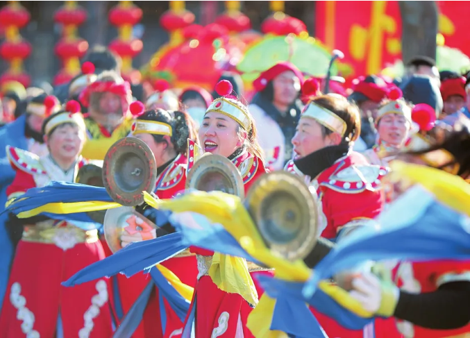 2月7日,在晋中市榆次老城景区内,传统民间社火队伍正在进行表演,游客在喜庆氛围中感受传统民俗的魅力。谢晋摄