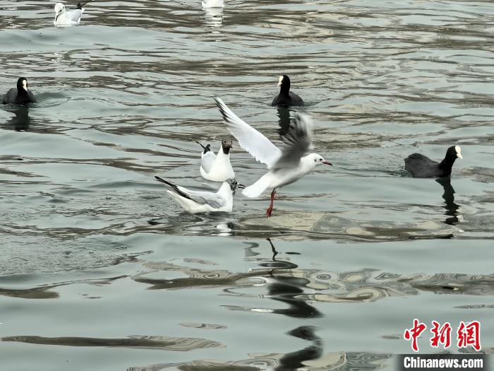 中新网太原3月12日电 (记者 胡健)春寒未褪,位于山西太原的汾河湿地公园因“鸥”而热,数百只红嘴鸥在河面上时而俯冲捕食,时而盘旋成阵,岸边的孩童嬉闹声和摄影师的快门声此起彼伏。
