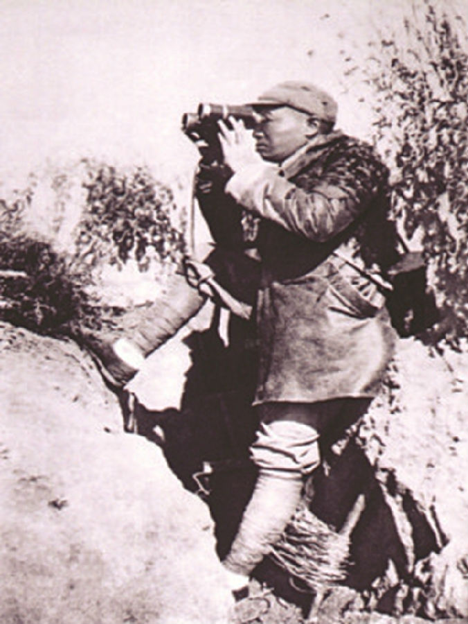 彭德怀在百团大战前线观察战况。