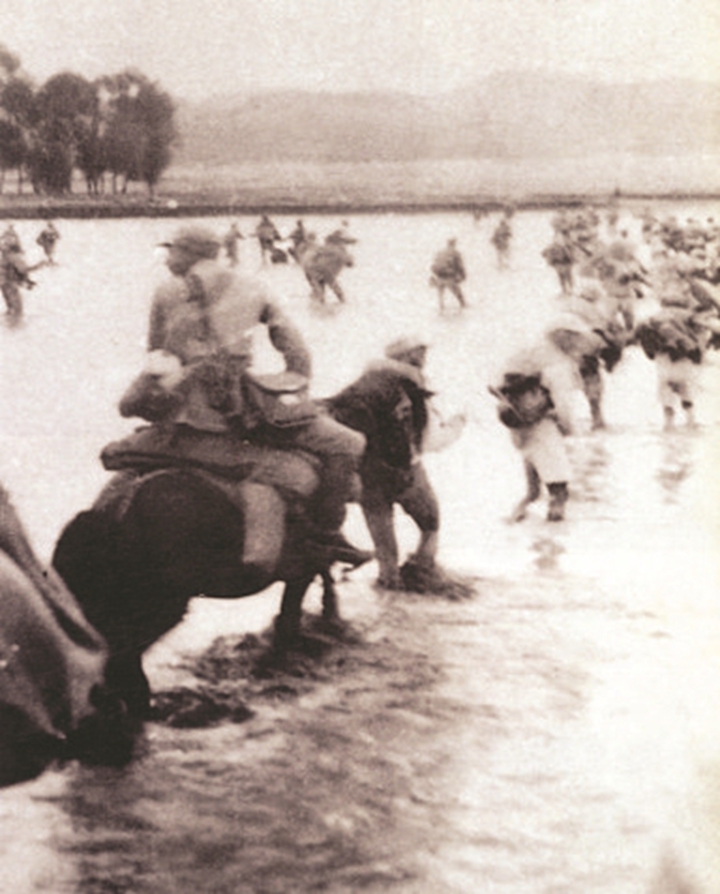 八路军第一二〇师渡过汾河执行破袭同蒲铁路任务。