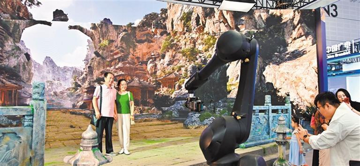 8月21日,山西影视集团展区,观众在体验AI虚拟拍摄。范文静摄(中经视觉)
