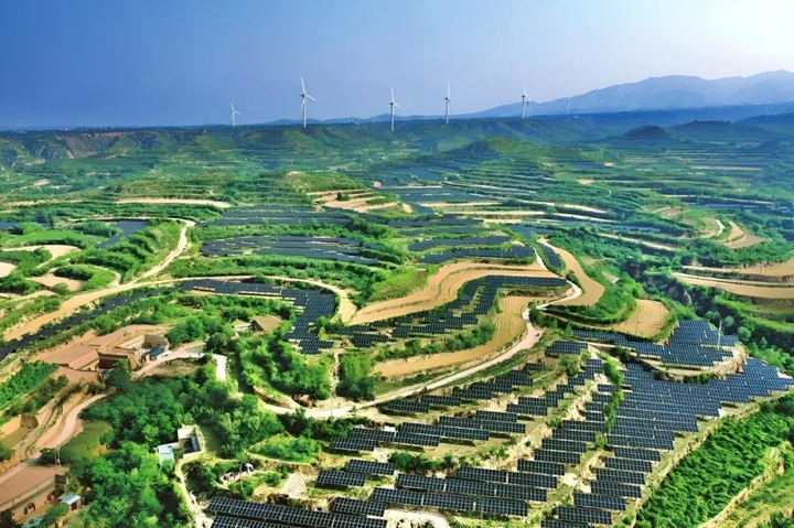 ▲图为山西省平陆县,荒山披“铠甲”,绿电送万家。郝健/摄