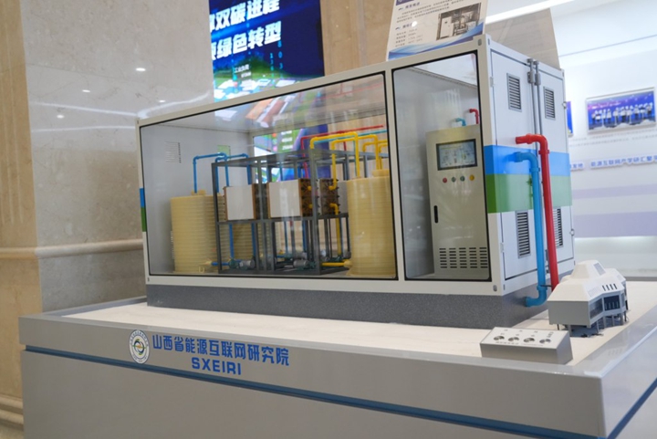 山西省能源互联网研究院展示的一项新能源解决方案。 澎湃新闻记者 王珏玮 图