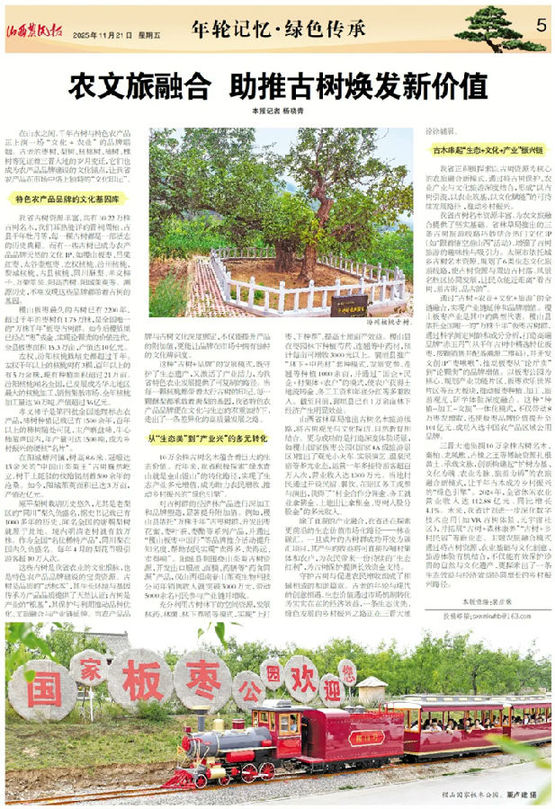 守护古树与促进农民增收组成了相辅相成的和谐篇章。古老的年轮与现代的创意相遇,生态价值通过市场机制转化为实实在在的经济效益,一条生态优先、绿色发展的乡村振兴之路正在三晋大地徐徐铺展。