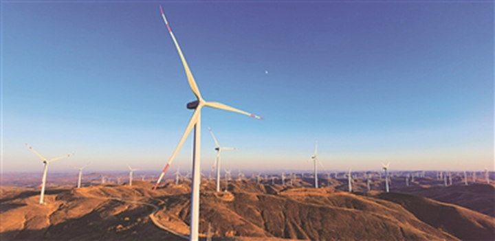 在海拔1500多米的娄烦县吕梁山腹地,崇山峻岭间,一排排巨型风力发电机组直指苍穹,与连绵成片的光伏板矩阵交相辉映。这是全省规模最大的300兆瓦风光电项目,每年可向电网输送清洁能源6.6亿千瓦时,可节约标准煤约19.8万吨,减少二氧化碳排放量约45万吨。