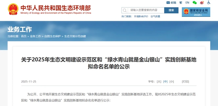 2025年“绿水青山就是金山银山”实践创新基地拟命名名单: