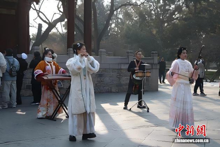 山西太原晋祠在元旦期间举办民乐演绎活动。晋祠博物馆 提供