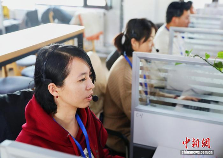 在山西省大同市阳高县,客服工作人员接听来电用户。宋佳烨 摄
