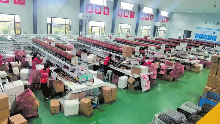 ②数字智能分拣中心为苹果“体检”分级。