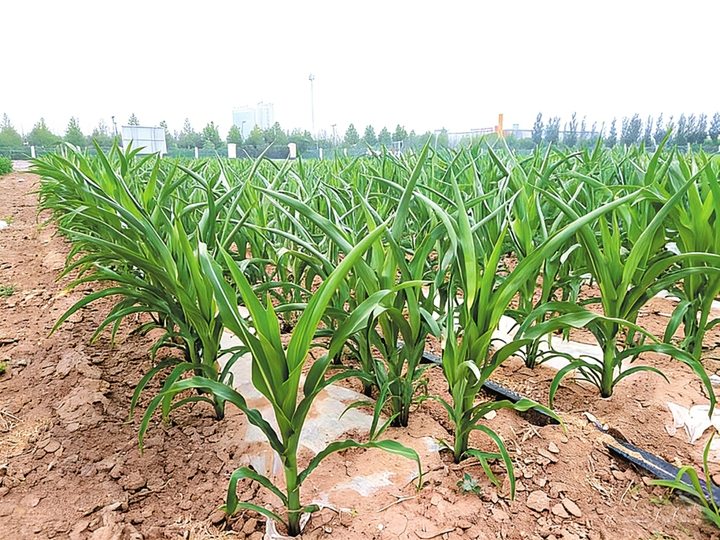 ①无人机在“北斗+智慧农业”玉米单产提升项目试点田作业。李龙摄