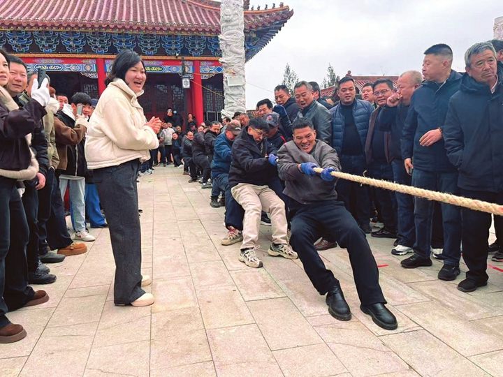 2月25日,运城市平陆县圣人涧镇傅相祠前人山人海、摩肩接踵,广场中央的空地上,一场由14个村、社区代表队同台竞技的拔河比赛正火热上演,将新春的喜庆氛围拉满。