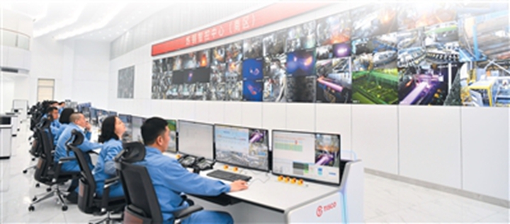 智控中心的巨大屏幕上,钢种、炉号、温度等9类实时参数,经AI算法转化为直观指南,操作工一眼便可掌握生产动态。