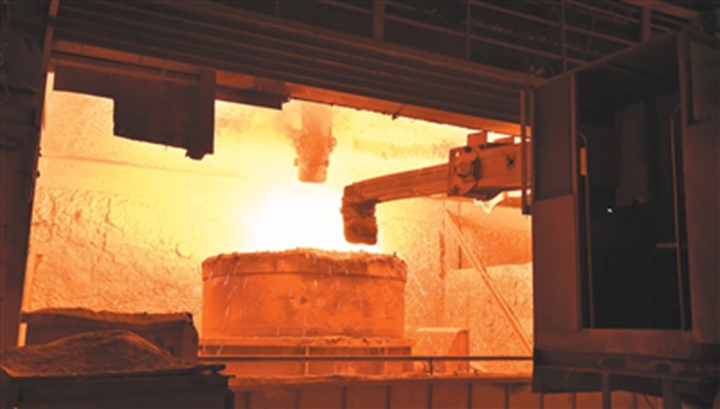 太钢炼钢厂北区正在进行无人自动化作业。