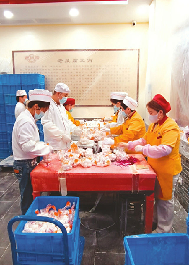 工作人员正在包装老鼠窟元宵。