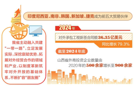对外投资和工程承包业务同样是我省共建“一带一路”的一大亮点。2024年不断完善海外综合服务体系,非金融类直接投资达6517万美元,同比大增408.7%。这表明山西省企业加快了“走出去”的步伐,积极在海外布局,拓展国际投资领域,寻求更广阔的发展空间和资源。同时,对外承包工程新签合同额36.35亿美元,同比增长79.3%。截至2024年底,山西省外商投资企业数量由2020年的500余家增长至900余家。