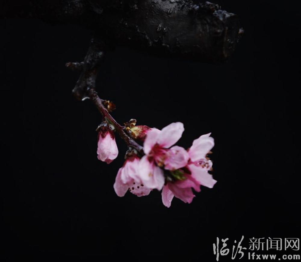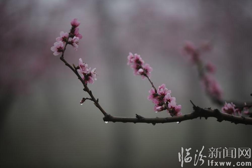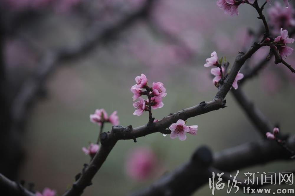 伴随着蒙蒙细雨和锣鼓声,演员们欢歌笑语,四面八方的游客,雨中欣赏着桃花。(宋德胜 摄)