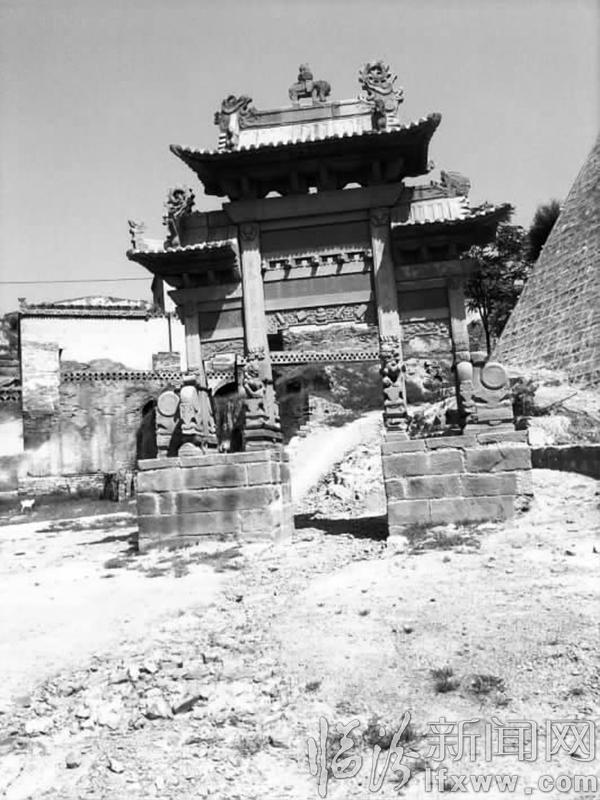 它距县城大约只有五公里路程,所以没用多少时间,即已抵其地。下车,一座巍峨的节孝牌坊首先映入眼帘,顿时造出了一种气势。这座牌坊,创建于清咸丰七年(1857),坐北朝南,占地12平方米,高6.3米,宽5.8米,四柱一门,重檐歇山顶。细看,种种精致的石雕遍布牌坊,灵物多达465个,其中有猫360只、大象59头,它们形姿生动,极显精雕细刻。过牌坊后,沿着一条石铺的小路,迈步而上,也就正式进入师家沟了。