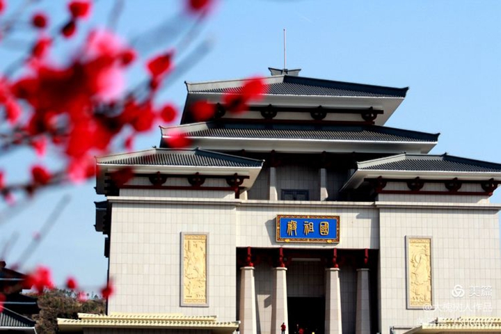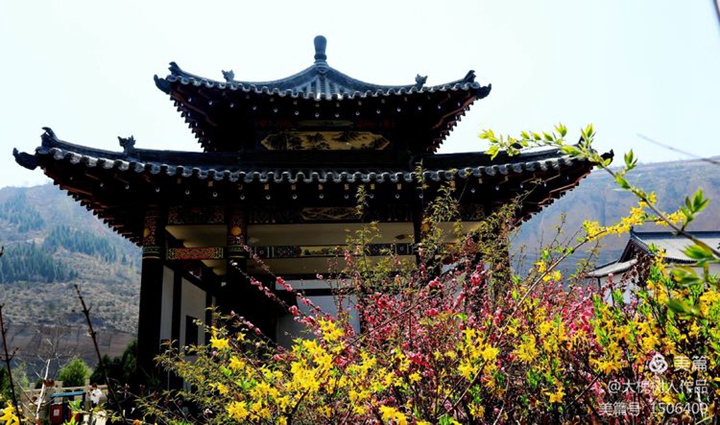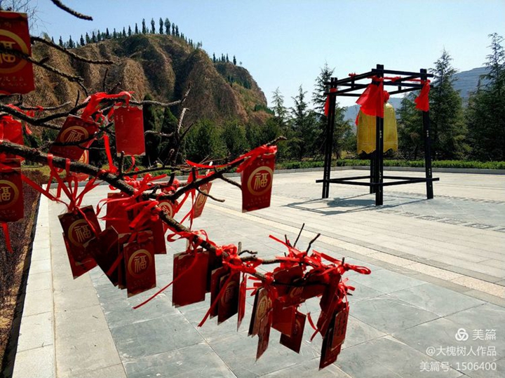黄了迎春花、红了桃花、白了杏花、粉了樱花,花团锦簇把整个景区衬托得肃穆威严,雄伟壮观。