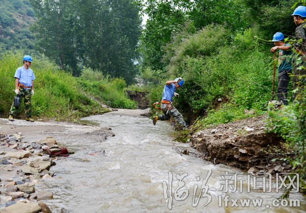 “古县的地形山连山,站在山上望去片片山”,这是古县供电公司输电运检班韩洪记对古县电网布局形容的比喻。古县隶属山区丘陵地势,煤炭为主导产业,面积南北长、东西窄,供电线路几乎全在东西两山。公司输电运检班只有3个人,担负着辖区内35千伏线路133公里、电杆499根、铁塔117基供电线路维护运行任务,翻山越岭,跨沟跃壑,巡线检修,做好山间供电的“卫兵”。连日来,面对恶劣天气的变化,“防雨,防雷,防风,防洪,防暑,防树害、鸟害、树害事故”这过夏六防工作使得他们更加劳碌,看看地基、摸摸拉线、拧拧螺母、望望塔件,及时消除缺陷……张天杰 摄