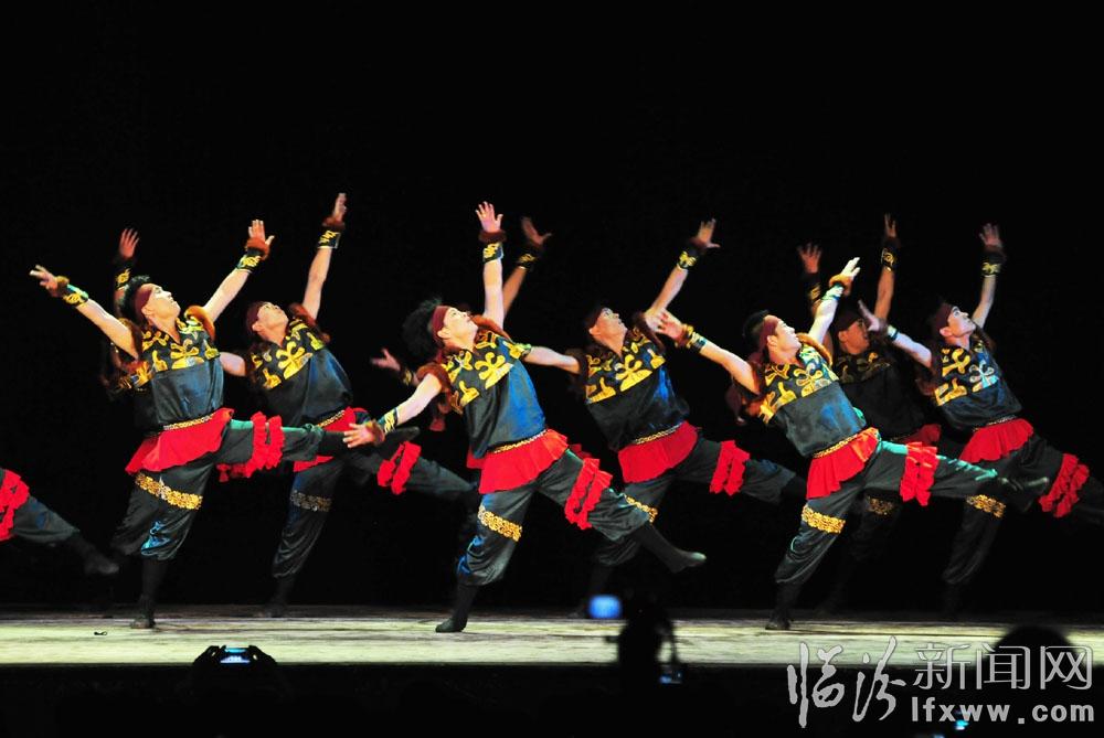 临汾新闻网讯 5月19日晚,山西师范大学音乐学院舞蹈系2015届毕业汇报专场演出活动在该校文化艺术活动中心举办。在女子群舞《春知沂蒙》中拉开帷幕,包含群舞、舞蹈组合等11个节目。女子群舞用娇柔妩媚的身姿,衣袂翩翩的舞姿赢得观众阵阵喝彩与尖叫。优美的舞姿风格各异,在旋转跳跃间演绎了不同的民族特色,情景故事是柔美与力量的融合,婉转与张扬的呈现。男子群舞则铿锵有力,用肢体的矫健与力度诠释了男子气概与对梦想的追逐。最后在男子群舞《天堂草原》中落下帷幕。整场演出异彩纷呈,震撼人心,演出现场人声鼎沸,热闹非凡。