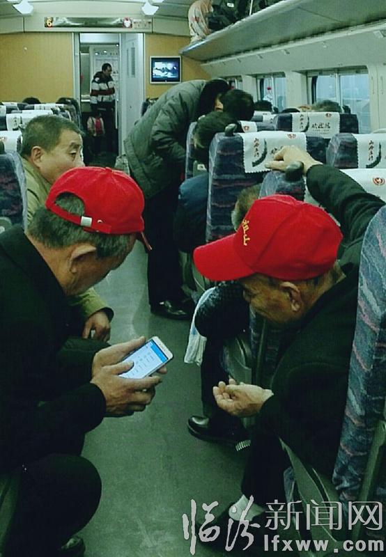 第一天,路上。这些老队员,都是第一次去大都市,感觉有些新奇,个个都有些激动。瞧瞧,他们多时尚,动车上玩起手机,给家人发送微信报平安。
