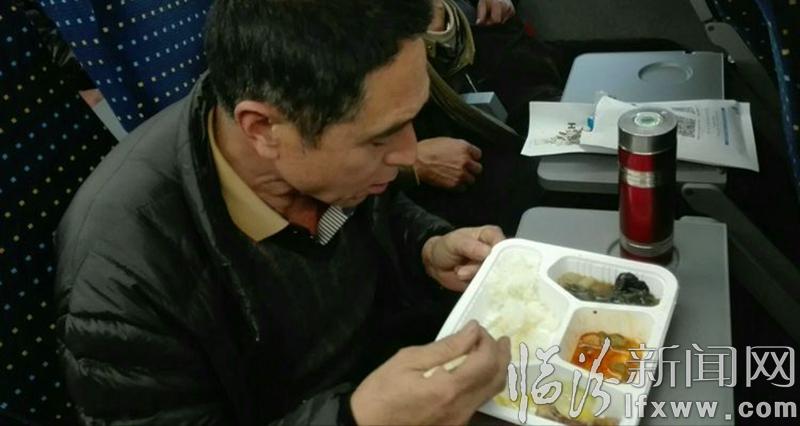 下午6时,队员们第一回,在高铁车上吃着盒饭。