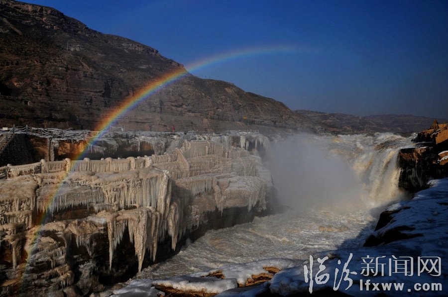 壶口冬景:彩虹下晶莹剔透的自然冰雕(5张)