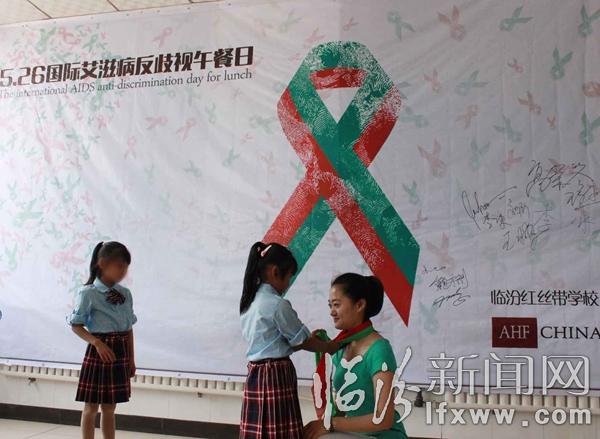 发布时间:2015-05-27 09:09:55临汾新闻网讯 5月26日是“国际艾滋病反歧视午餐日”,来自美国艾滋病健康基金会中国项目官员、澳洲华裔企业家以及我市社会各界百余名志愿者们,与红丝带学校师生一道携手互动,通过“共进一次午餐,减少一分歧视”的活动,向是人们传递艾滋病反歧视理念。活动中,他们通过与艾滋病感染者正常接触,共进午餐的行为,唤起人们对艾滋病感染者群体的关心与关爱。 孙国芳 摄