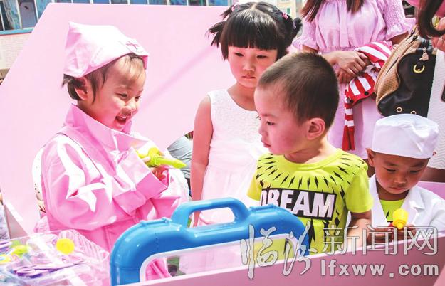 发布时间:2015-06-01 10:36:43六一儿童节之际,尧都区实验幼儿园给孩子们营造快乐和谐的节日气氛,将“爱心医院”搬进幼儿园,由小朋友分别扮演医生、护士和患者,体验就医的场景,旨在培养孩子从小养成爱护个人卫生,关心体谅他人的好习惯。(郝海军 摄)
