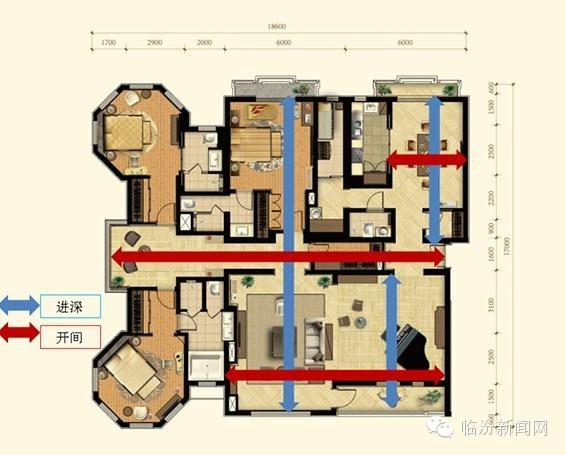 一般意义上的户型方正就是指户型的进深与开间之比合理。进深与开间之比一般介于1:1.5之间较好。进深过大,开间过小,会影响户型采光通风,房间内会显得比较暗;而进深偏小,开间过大不利于房间保温,浪费能源,北方尤其如此。比较方正的户型能做到采光通风与保温两者间的平衡。