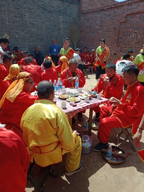 羊獬村接姑姑的队伍进村了。亲戚来了咱喜欢!请你先抺一把脸,洗洗尘擦擦汗。请你坐下来,喝杯茶歇歇脚。请你吃瓜吃果吃点心,再吸支香烟,润润嗓子解解乏。接待处的院里,摆满了小马扎围着的低桌,羊獬的亲戚别客气,尝尝咱的家常菜,吃一个暄腾腾的白靣馍……