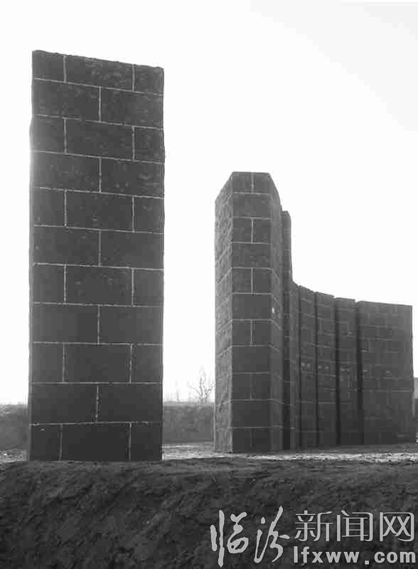 高江涛介绍,首先映入眼帘的是一根根的夯土柱,13根不规整的柱子呈半圆形,柱与柱之间留出了12道间距不等的缝隙。