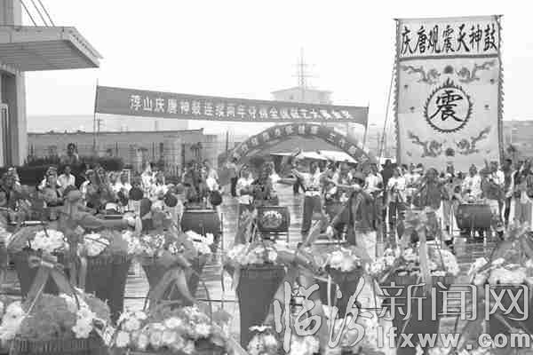 庆唐神鼓俗称浮山架子鼓、浮山锣鼓。最早起源于公元620年(唐武德三年间)庆唐观(后改为天圣宫)。