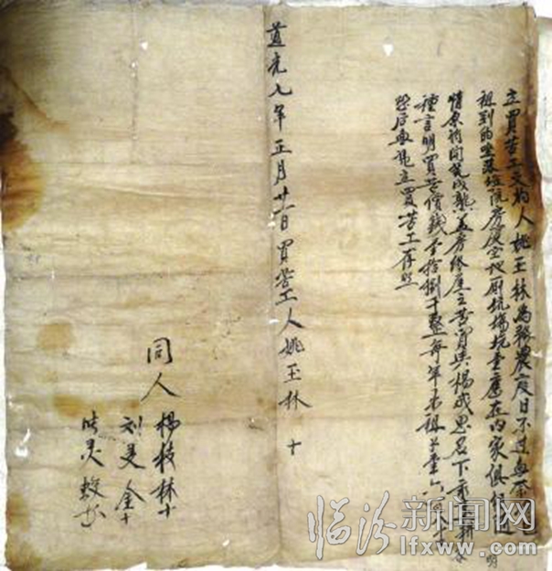 日前,收藏爱好者刘先生向记者展示了一份清道光七年(公元1827年)正月二十日的契约,距今整整190年的历史了。