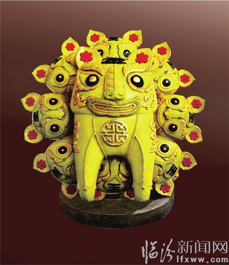 《九虎呈祥》贺岁雕塑,采用传统民间布艺和面塑风格,创新了九虎相依、生生不息的经典虎艺形象。雕塑造型一虎傲立,八虎相依,呈现出中国生态文明和万物共生的勃勃生机,象征中华民族大团圆的家国情怀,寄托了中国人民热爱自然,热爱生命,热爱生活的美好心愿。