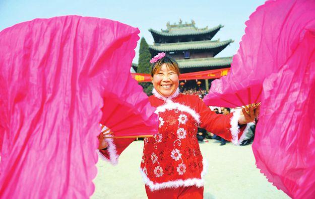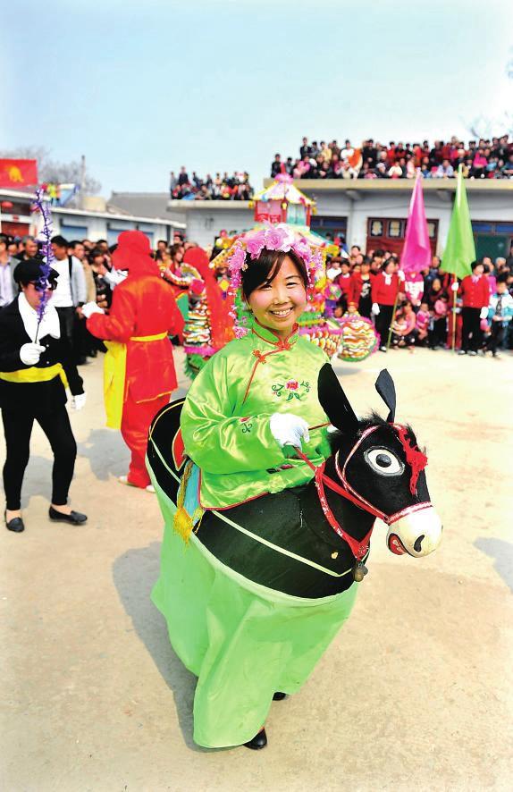 3月21日,是农历二月初二,襄汾县陶寺乡举办“二月二、闹社火、祈丰年”民间社火展演活动。当地农民以舞龙、划旱船、秧歌等独具特色的地方民俗节目,迎接新春农事的开始,祈求一年风调雨顺、五谷丰登。图为表演现场。 记者 闫锐鹏 摄