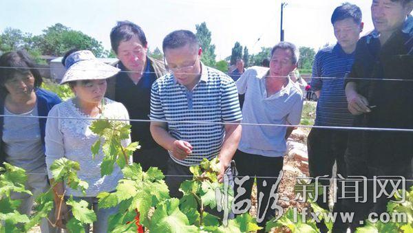 田间地头,山东技术员正在葡萄园内指导社员们种植技术。