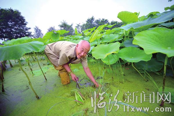 临汾新闻网讯 随着夏至入伏天的到来,莲菜生长进入关键的管理期,襄汾县燕村荷花园莲菜种植基地内,工人师傅抓紧时间清除莲塘内杂草,做好夏管工作,力保莲菜丰收。
