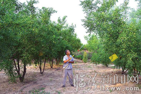 临汾新闻网讯 近年来,襄汾县在该县汾河沿线9个村的丘陵地带发展红枣经济林16000亩,实现了生态效益和经济效益的双赢。图为该县枣农正在做枣树病虫害防治,确保枣树稳产高产。 焦玉龙 任建杰摄