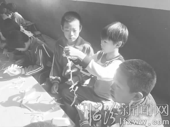 志愿者指导孩子们做手工