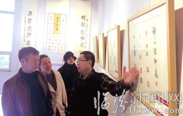 临汾新闻网讯 近日在襄汾县丁陶印社书画爱好者们在交流篆刻技艺。 襄汾县丁陶印社成立以来, 定期邀请篆刻名家进行讲学活动, 使之成为全县书法篆刻艺术的交流平台。记者 闫锐鹏摄