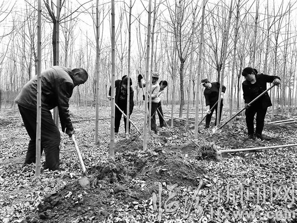 临汾新闻网讯 近日,襄汾县一家苗木基地工人师傅正在挖掘树木准备移栽。据了解,今年襄汾县将构建50万亩农田防护林网、丘陵区30万亩干果经济林带、东西两山形成人工造林和封山育林相结合的20万亩防护林体系建设,着力建设绿色生态襄汾。焦玉龙 摄