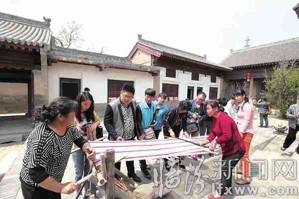 临汾新闻网讯 四月四日在襄汾丁村民俗博物馆游客在体验纺织粗布活动丁村民俗博物馆在做好景区服务的同时将打制石器丁村土布纺织体验等活动融入到旅游文化中来, 深受游客欢迎。 记者 闫锐鹏 摄