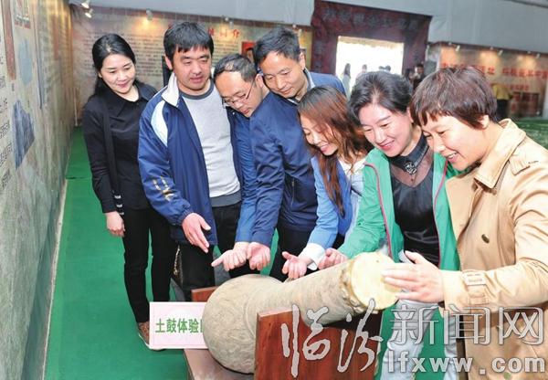 临汾新闻网讯 4月18日,在襄汾县陶寺遗址考古发掘成果展上,来自临汾尧晋商学会的会员在土鼓体验区欣赏古代器乐。襄汾县依托陶寺观象台、陶寺遗址考古发掘成果展等特色尧文化场所,在做好公益讲解、免费参观的同时,设立特色互动体验区以及天文观测区等,让广大市民和游客更进一步了解体验尧文化。